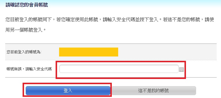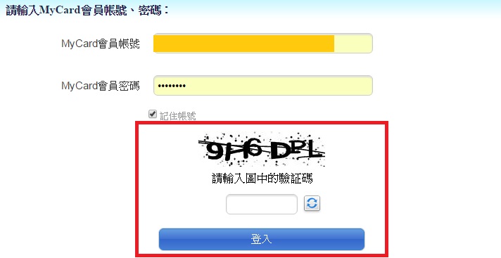 輸入「安全交易代碼」,進行「MyCard會員登入」。