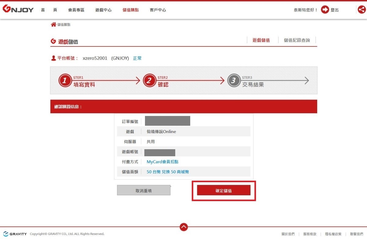 確認交易資料,點選下一步,導向「MyCard會員登入頁」。