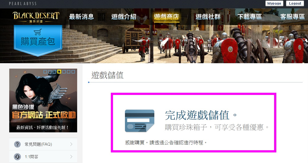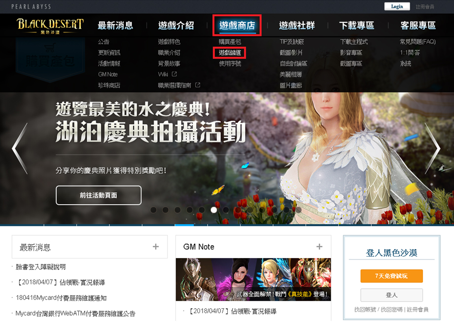 ※黑色沙漠付費方式會因所在地區IP有所差異,請先至遊戲官網確認所在地區是否支援該付費方式。