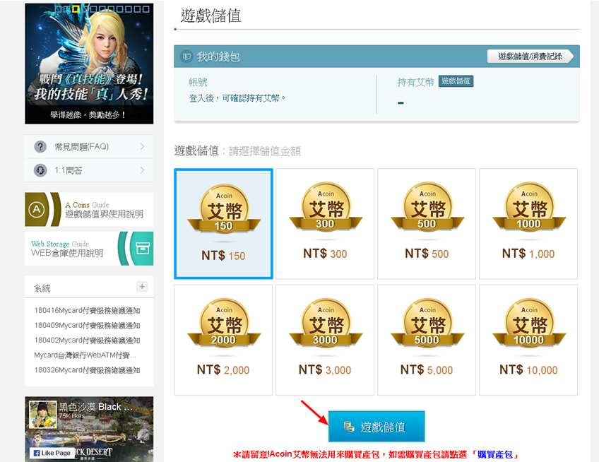 黑色沙漠的Acoin艾幣儲值購買方式很多種,您可以選擇其中一種方式進行購買。