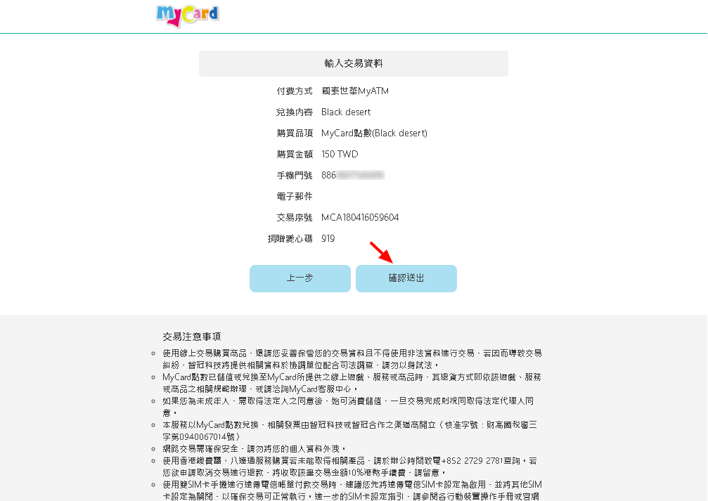WebATM儲值注意事項:(如操作上遇到任何問題,請聯繫24小時MyCard客服協助您排除)