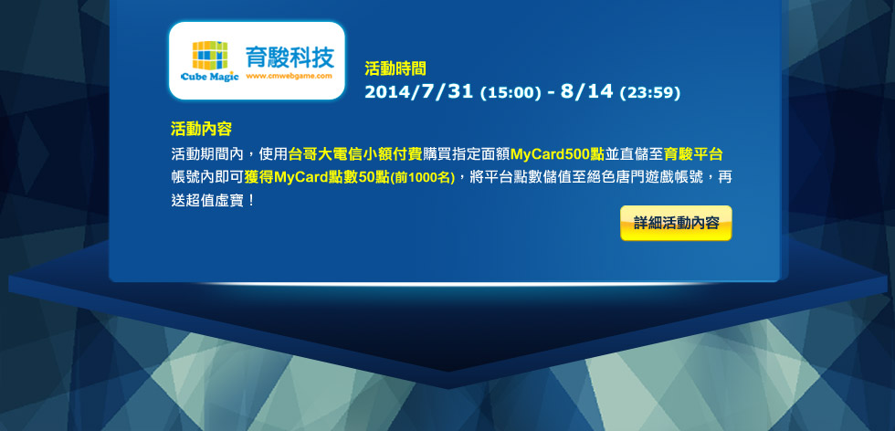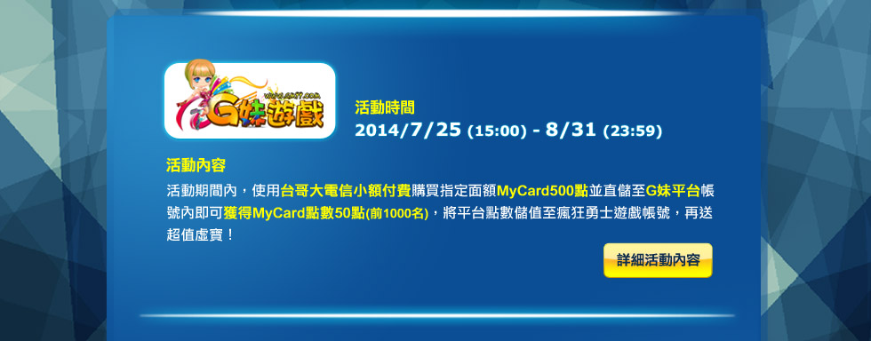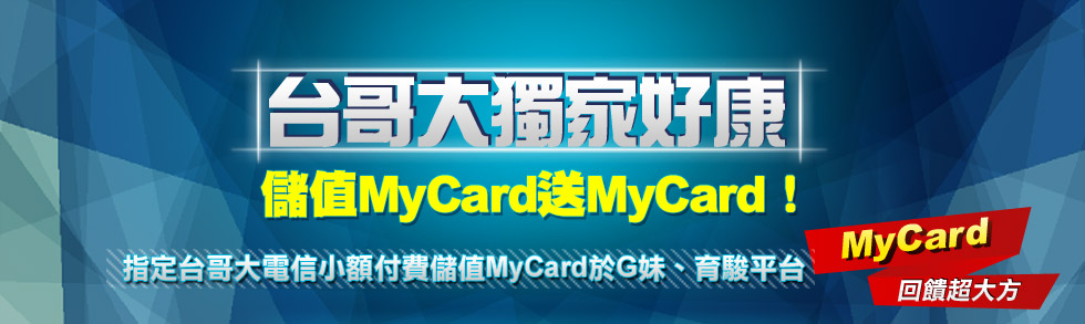 指定台哥大電信小額付費儲值MyCard於G妹、育駿平台,MyCard回饋超大方