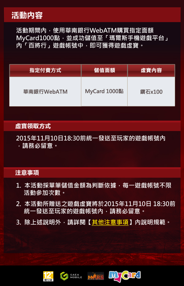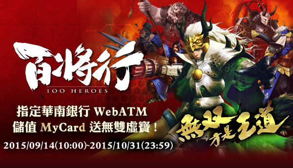 指定華南銀行WebATM,儲值MyCard送無雙虛寶
