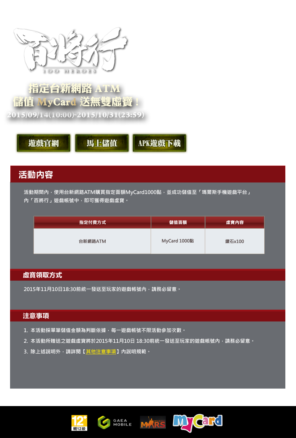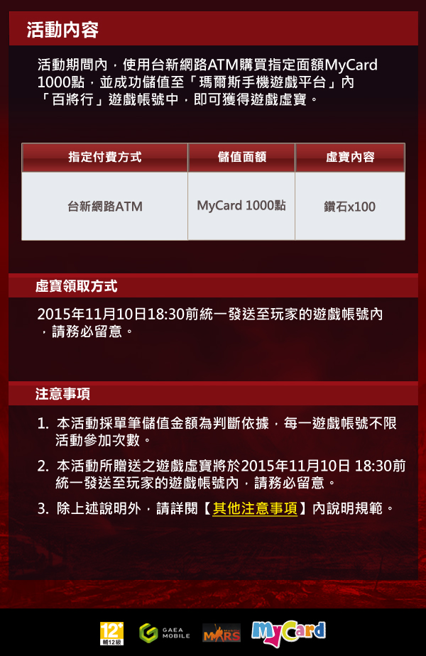 指定台新網路ATM,儲值MyCard送無雙虛寶