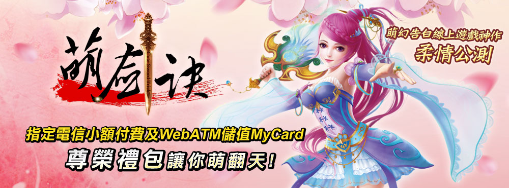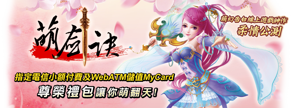 遊戲官網 儲值購點 遊戲下載 FB粉絲團活動期間,使用玉山銀行WebATM付費購買指定面額MyCard 2000點,並直儲至「萌劍訣」遊戲內,可獲得玉山白金禮包;購買指定面額MyCard 10000點,並直儲至「萌劍訣」遊戲內,則可獲得玉山尊榮禮包。